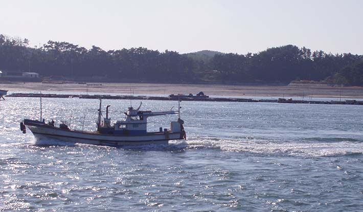 남쪽 해변에 5개의 해수욕장이 있습니다. 반대 쪽은 갯벌지역입니다.